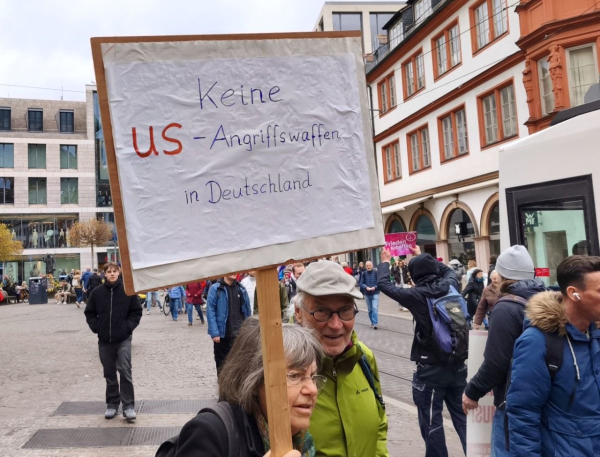 Trotz des eher bescheidenen Wetters zog es laut Angaben der Veranstalter um die 400 Menschen zur Demonstration und der Abschlusskundgebung. Wir danken allen, die sich in diesen Zeiten gegen den Kriegskurs stellen, und hoffen, dass auch die anderen Kundgebungen in ganz Deutschland ein Zeichen gegen Aufrüstung und für Diplomatie setzen konnten.