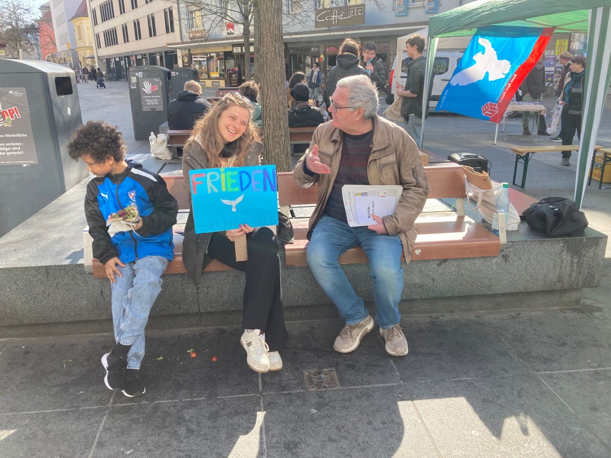 Und natürlich wurden die Schüler nicht im Stich gelassen: Viele Organisationen beteiligten sich an Organisierung und Ablauf der Schulstreiks, darunter natürlich wir, die DKP und die SDAJ, ebenso die Deutsche Friedensgesellschaft – Vereinte KriegsdienstgegnerInnen (DFG-VK) oder auch die Freidenker. Auch die junge Welt war vielerorts vertreten. Denn wir wollen die Jugendlichen in ihrem antimilitaristischen Kampf unterstützen und zugleich den einzigen konsequenten Lösungsweg aufzeigen: “Der Kapitalismus trägt den Krieg in sich wie die Wolke den Regen” (Jean Jaurès) – und deshalb muss der Kampf um den Frieden mit jenem für Sozialismus und Kommunismus aufs Engste verbunden sein.